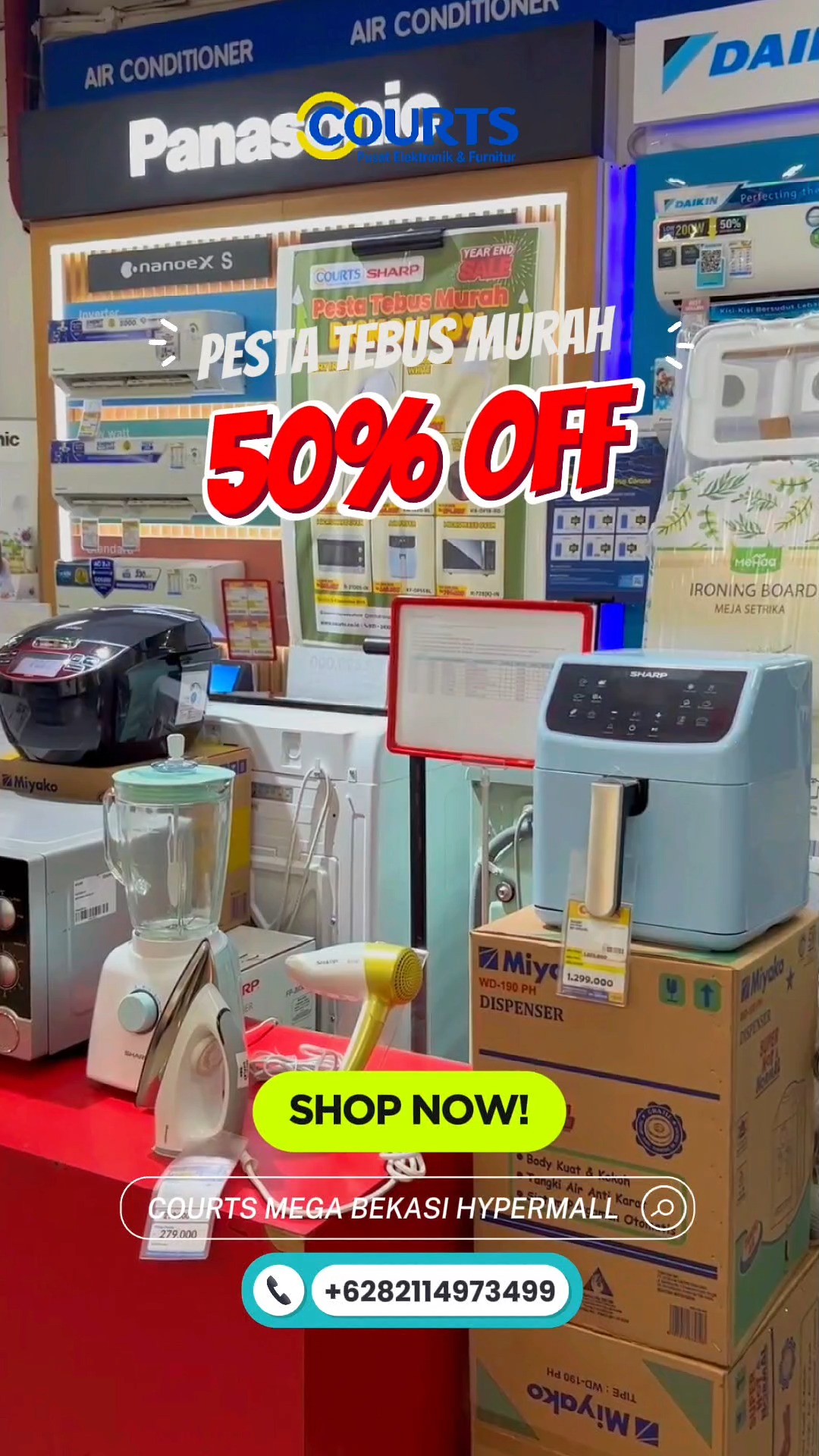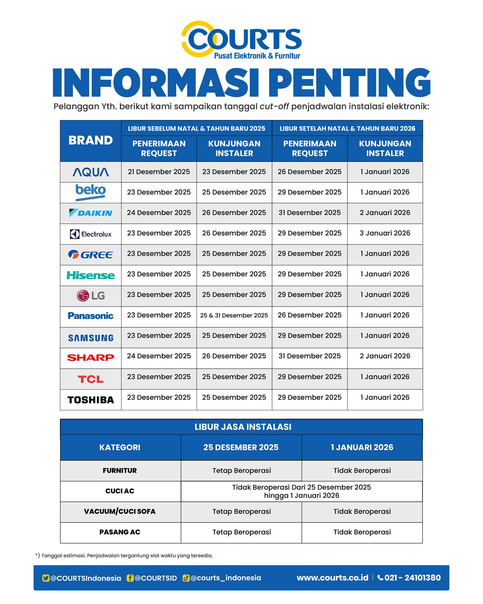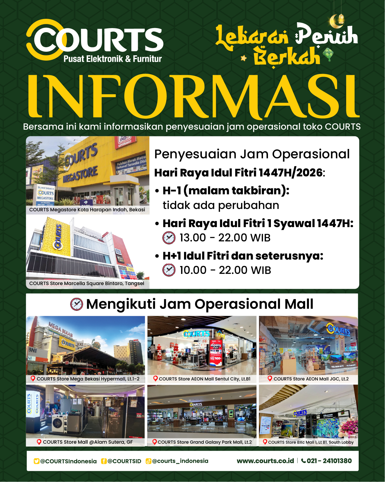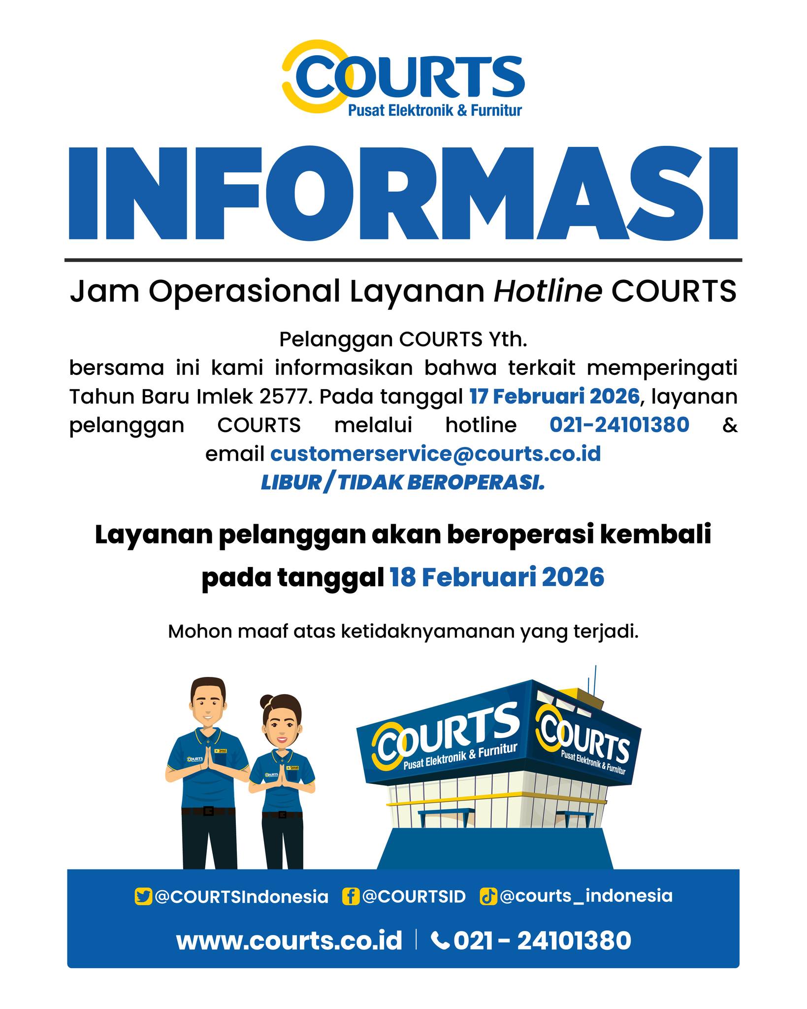 COURTS sudah ada layanan Home Delivery! Chat WhatsApp pertugas kami sesuai domisili Anda tinggal khususnya di wilayah JABODETABEK dan bisa GRATIS* ongkir loh!