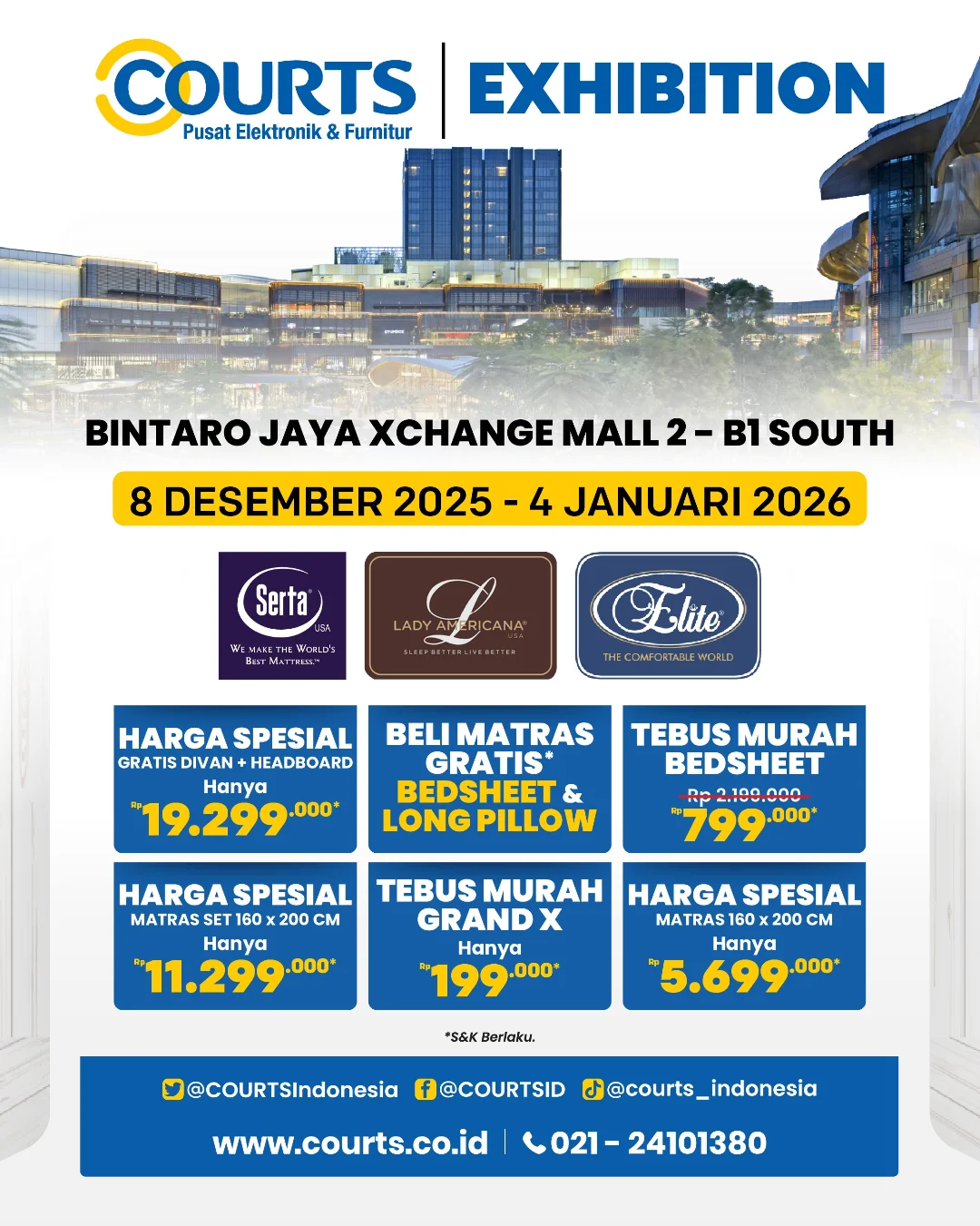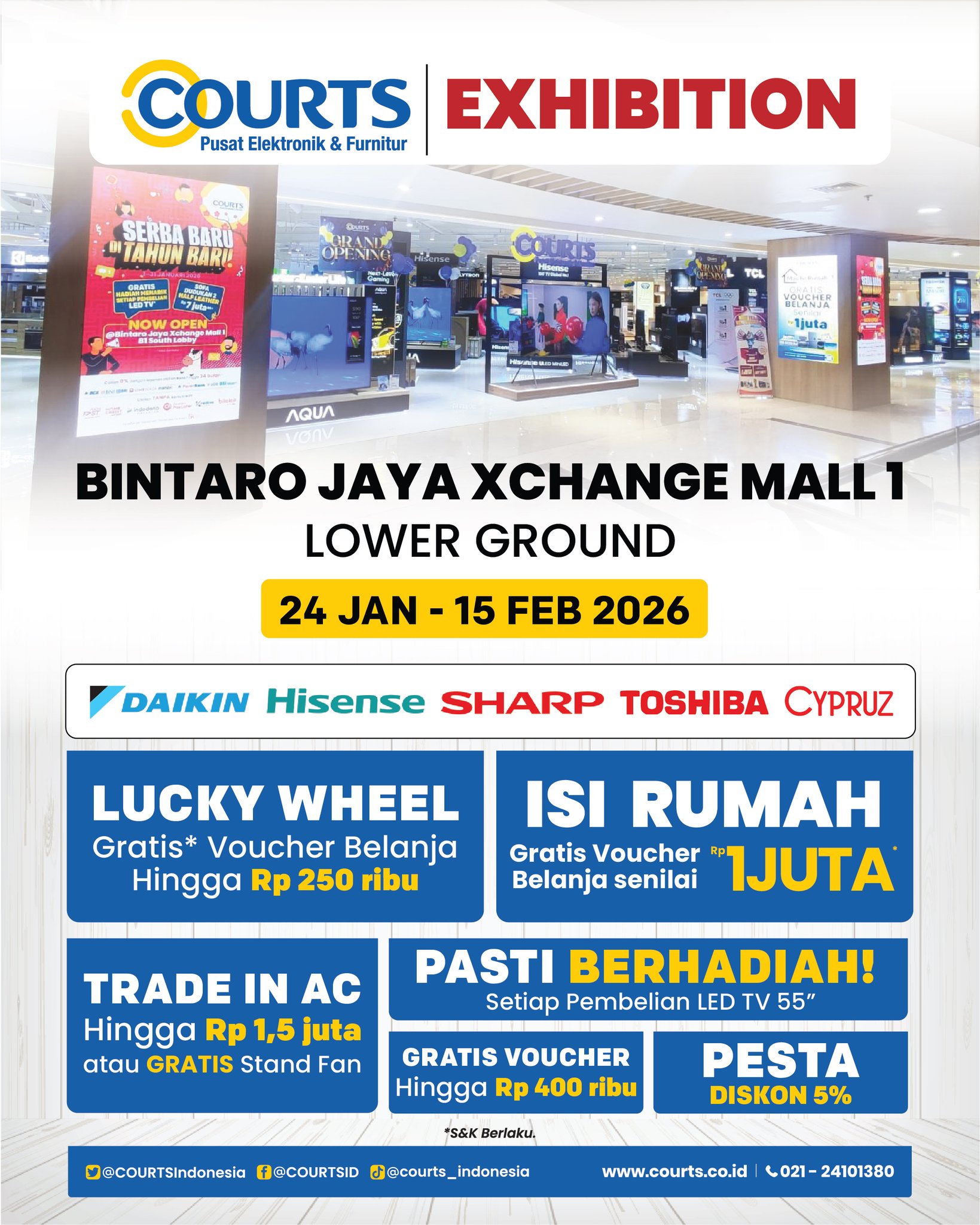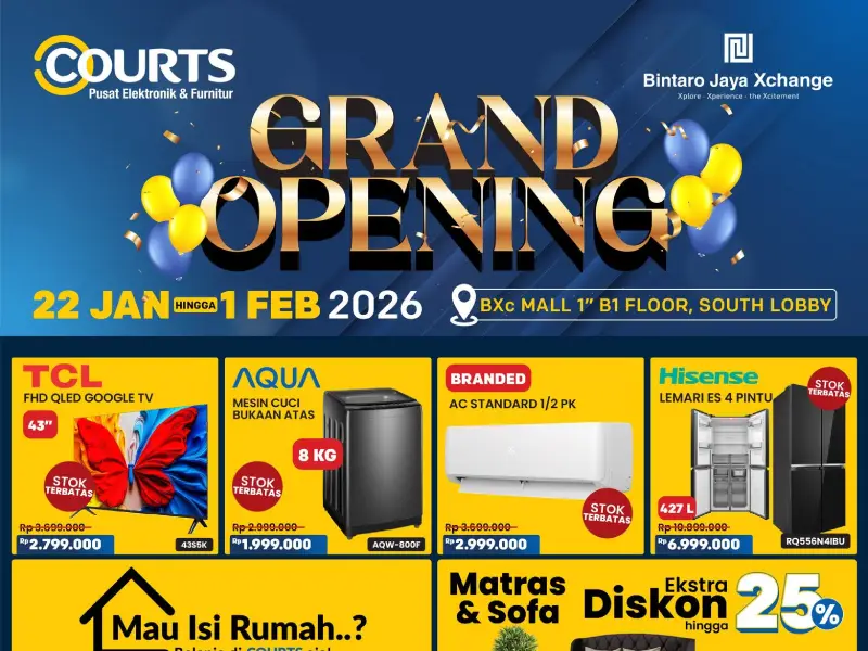 Berbelanja berbagai merek elektronik dan furnitur populer yang telah bekerja sama dengan COURTS.