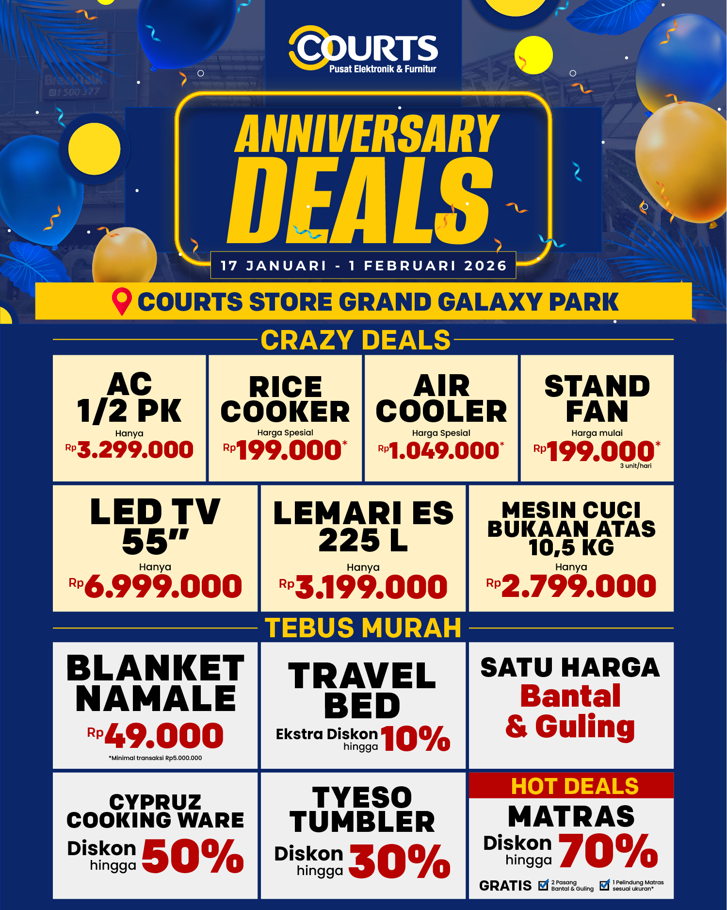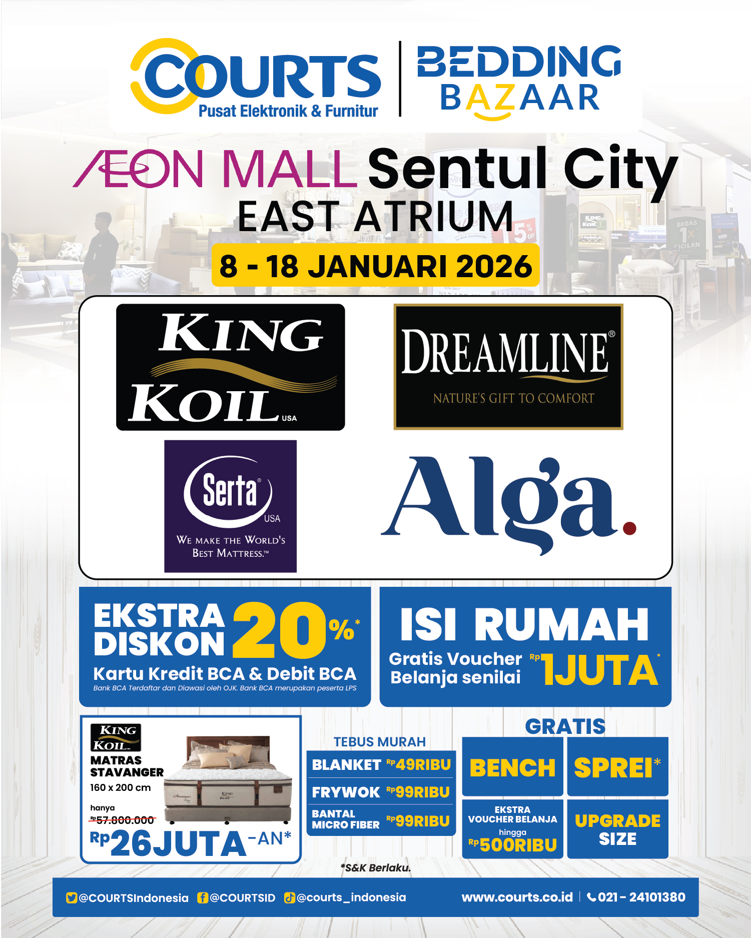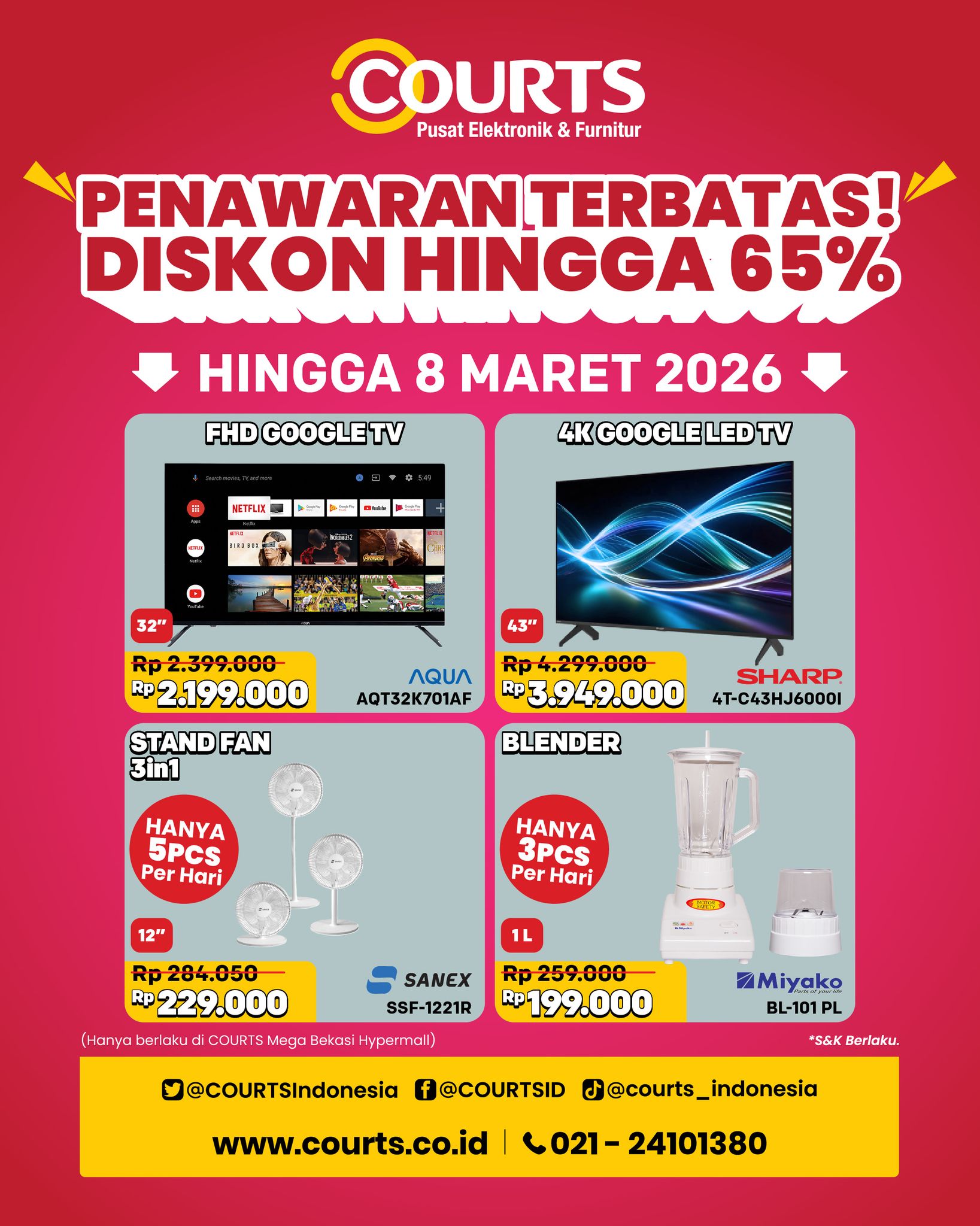Berbelanja berbagai merek elektronik dan furnitur populer yang telah bekerja sama dengan COURTS.