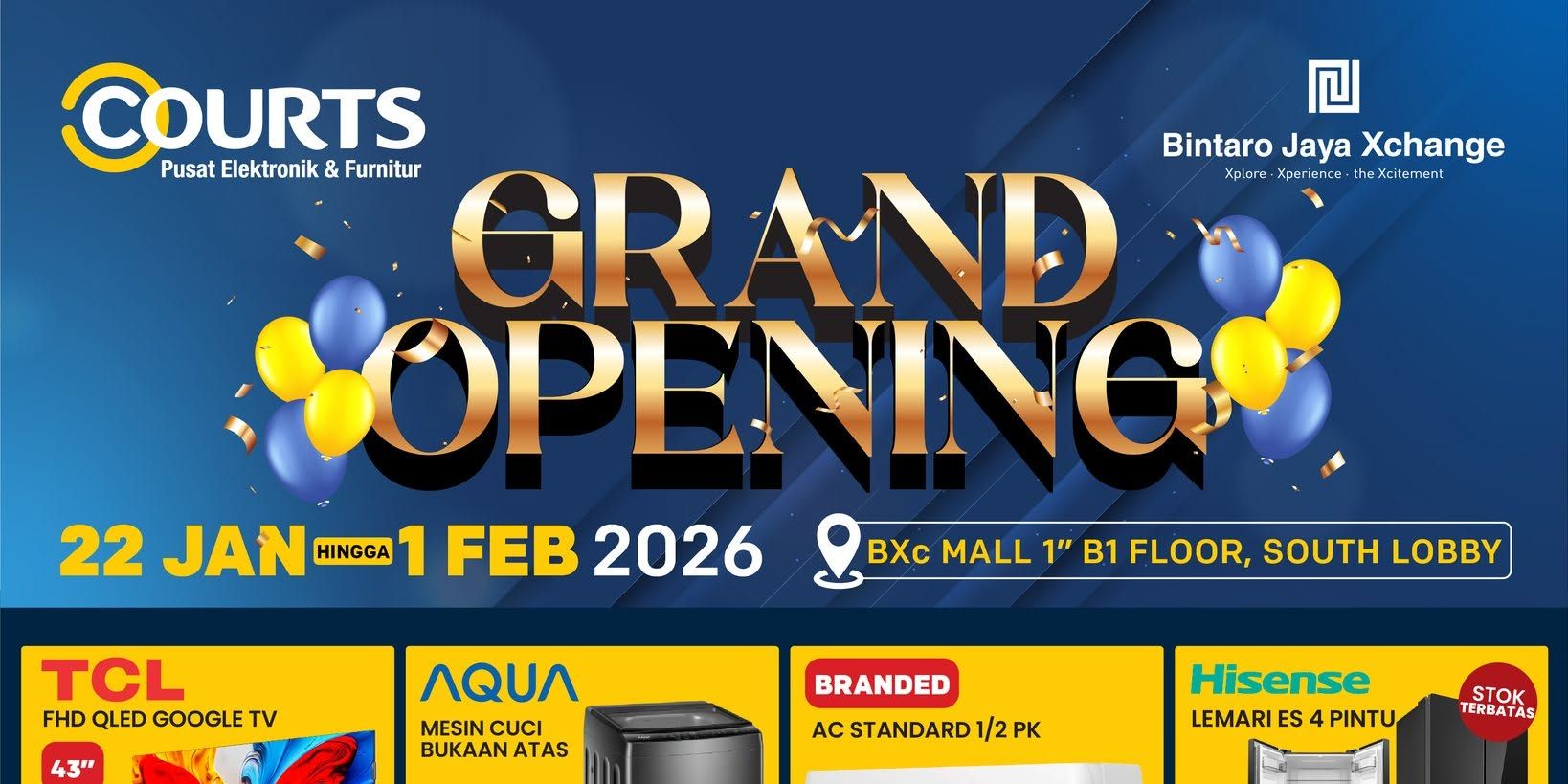 Penawaran berlaku di COURTS Bintaro Jaya Xchange Mall dari hari Kamis, 22 Januari 2026 hingga hari Minggu, 1 Februari 2026.