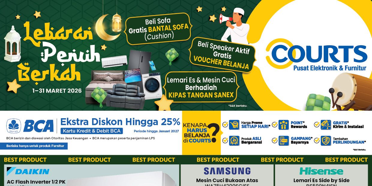 Penawaran berlaku di seluruh cabang COURTS Indonesia dari hari Minggu, 1 Maret 2026 hingga hari Selasa, 31 Maret 2026.